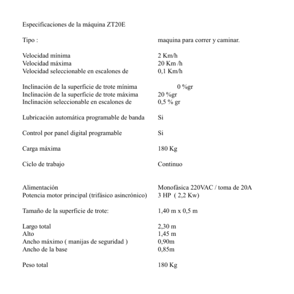 - Alimentación Monofásica 220V 20A – Motor de 3HP